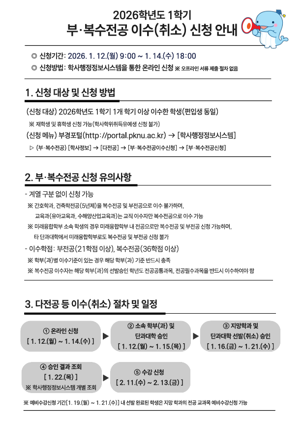 2026-1학기 부·복수전공 이수(취소) 신청 안내